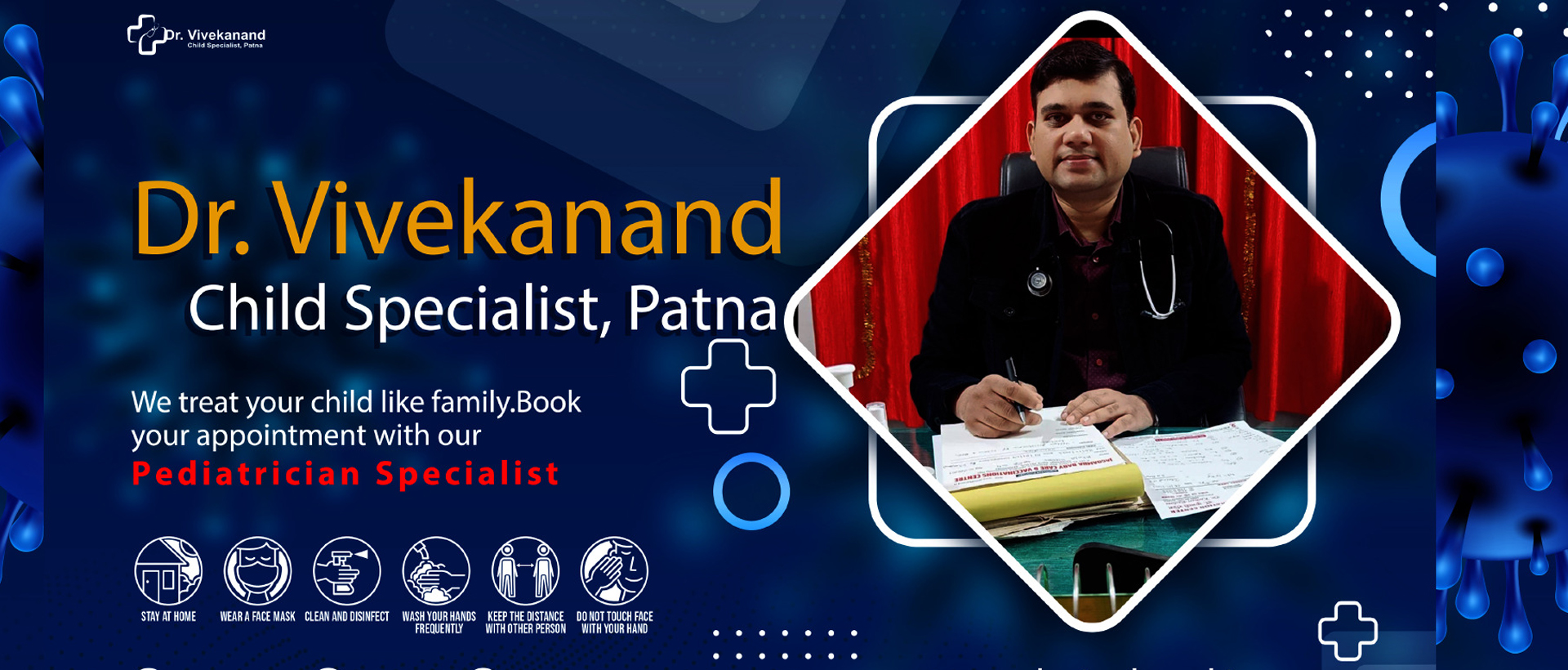 Dr. Vivekanand is done, MBBS(Gold medalist) ,MD,DCH(Pediatrics),PGPN(Boston, USA),Former Resident of AIIMS, New Delhi.At Present Assistant Professor in PMCH,Patna.He Is famous child specilst.Baby-friendly & cool doctor. He is also vaccination expert. He is available all types of health facilities related to newborn and up to 18 years of age. He is having OPD, Indoor.